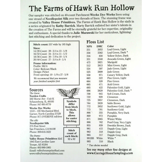 "THE FARMS OF HAWK RUN HOLLOW" by Carriage House Samplings - Counted Cross Stitch PatternRegular price $52.00 CADRegular priceUnit price / per-