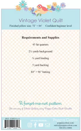 "FORGET ME NOT VINTAGE VIOLETS" Quilt Pattern by Poppie Cotton