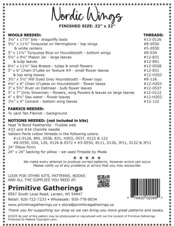 "NORDIC WINGS" Dragonfly Wool Applique Pattern by Lisa Bongean for PRIMITIVE GATHERINGS