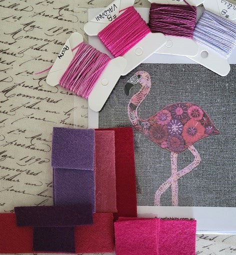 Fils de voyage – Motif et paquets d'appliques en laine flamant rose