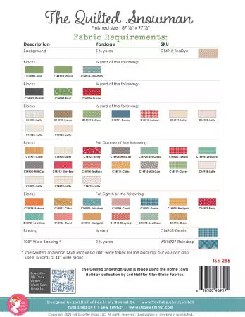 "THE QUILTED SNOWMAN" Quilt Pattern by Lori Holt for It's Sew Emma