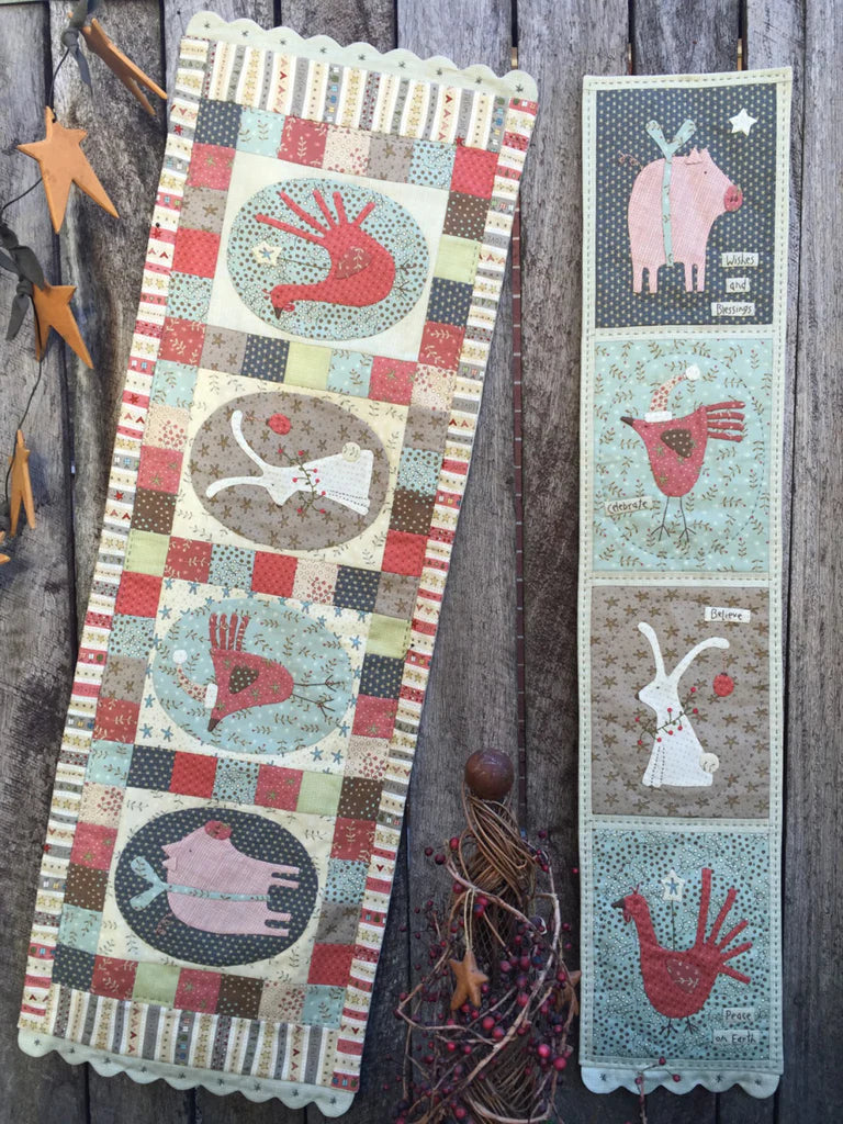 "Christmas Creatures" Quilted Wall Hanging Pattern, Table Runner Pattern, Hatched and Patched