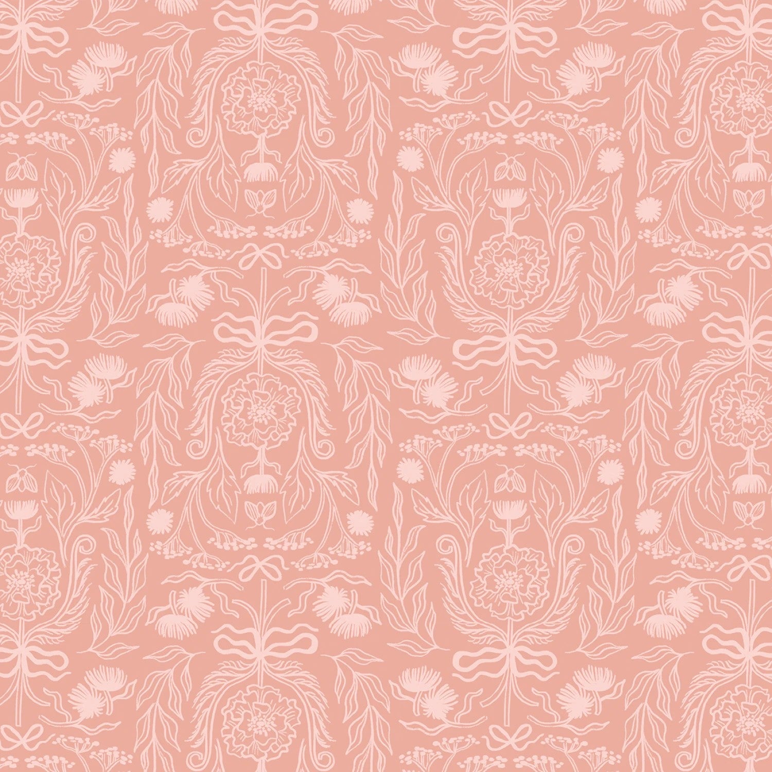 This delightful fabric features a charming toile design in a soft pink hue, adorned with elegant swans and intricate floral motifs. The pattern is delicately outlined in white, creating a classic and timeless look that is perfect for a variety of sewing projects, from elegant home decor to refined apparel.