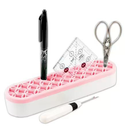 The new Stash ‘n Store is the perfect device to keep your sewing and crafting notions within arm’s reach and ready to go! Easily store marking tools, scissors, stilettos, rulers, even brushes and small rotary cutters, in an easy-to-grab upright position. The silicone pockets are smooth and offer a sturdy grip and it is also simple to clean. Size: 1.5in x 2in x 8.25in